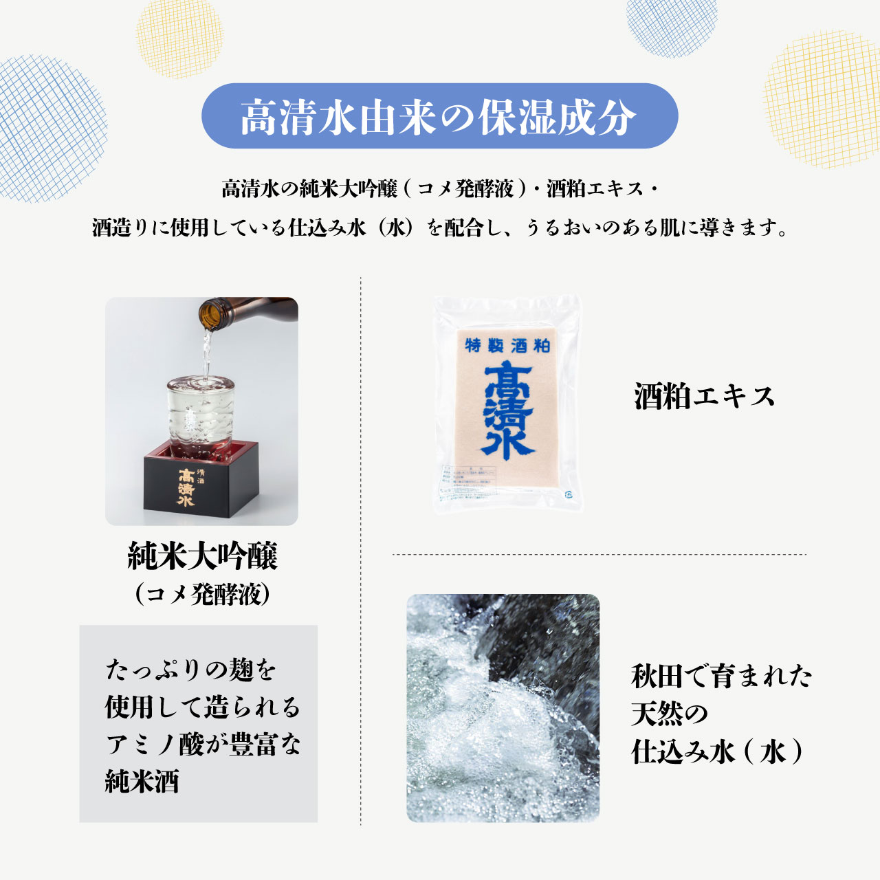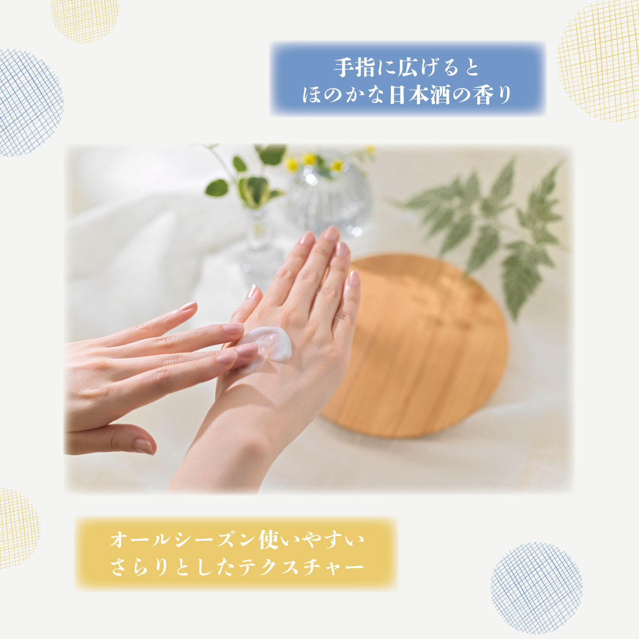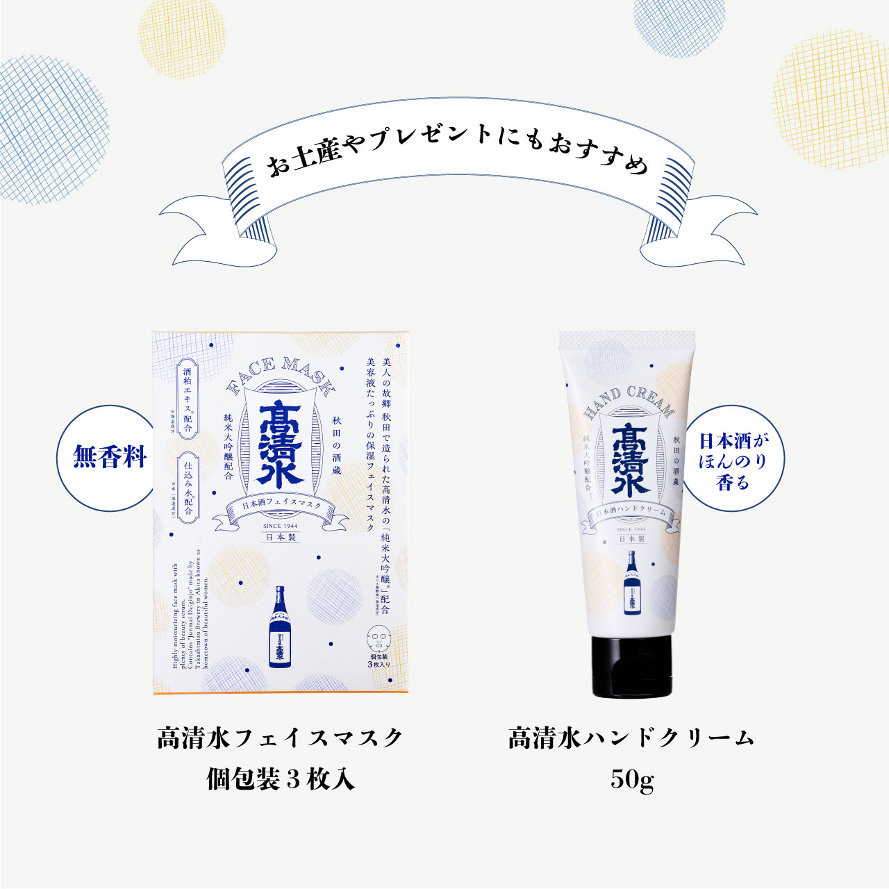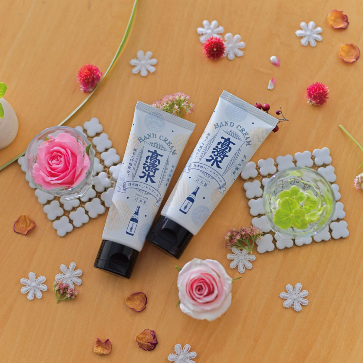 秋田の酒蔵「高清水」由来の成分を配合した、ほんのりと日本酒が香るハンドクリーム。秋田の冬に丹精込めて造られた「純米大吟醸」や酒粕エキスを配合し、乾燥が気になる肌にたっぷりとうるおいを与えます。日本酒好きな方へのプレゼントにもおすすめ。